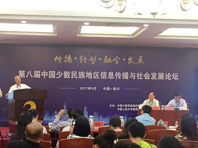 2017年9月16日,由中國(guó)少數(shù)民族地區(qū)信息傳播與社會(huì)發(fā)展論壇組委會(huì)、中國(guó)人民大學(xué)新聞傳播學(xué)院、寧夏大學(xué)新聞傳播學(xué)院聯(lián)合主辦,銀川市傳媒集團(tuán)協(xié)辦的第八屆少數(shù)民族地區(qū)信息傳播與社會(huì)發(fā)展論壇在寧夏銀川舉行。來(lái)自全國(guó)42所高校的130多名專家、學(xué)者齊聚銀川,圍繞少數(shù)民族地區(qū)信息傳播與社會(huì)發(fā)展問(wèn)題進(jìn)行交流研討。