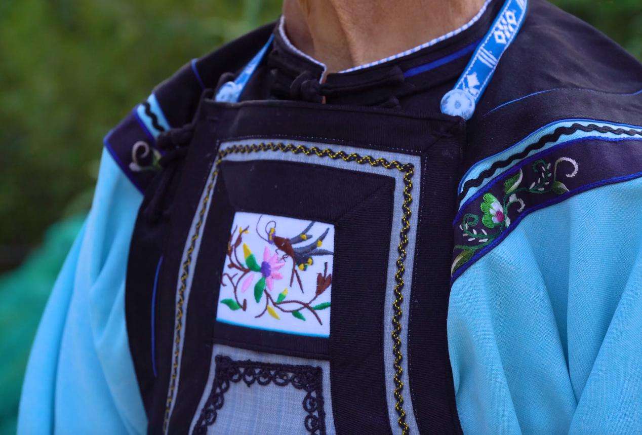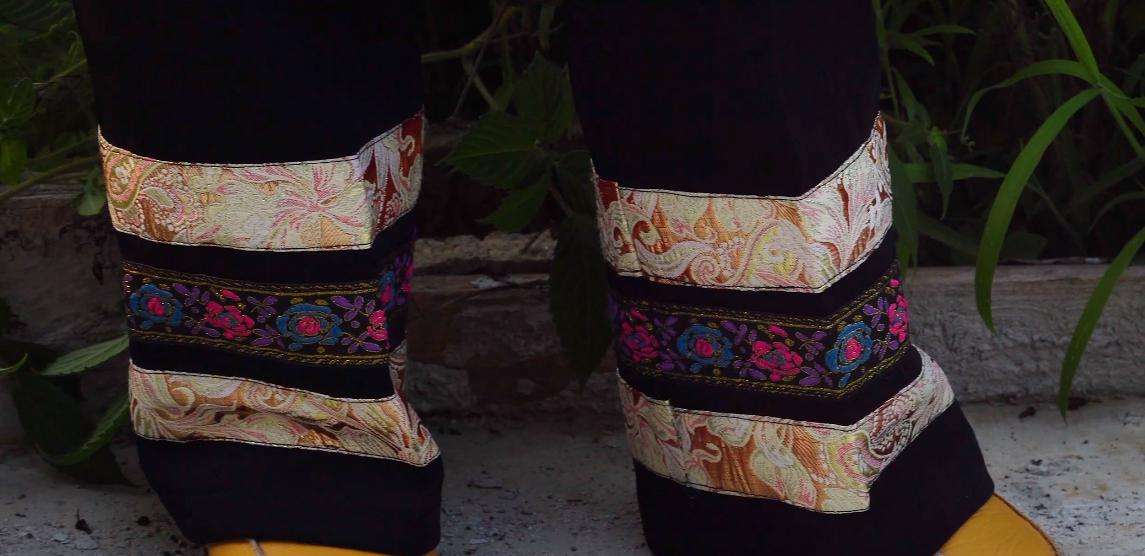 傳統(tǒng)服飾是由布依族傳統(tǒng)工藝制作而成,其上衣以藍(lán)色打底的斜襟衣和白色打底的圍腰為主,上衣對(duì)襟處繡有花草圖案作為裝飾,圍腰上部也繡有花草圖案作為描邊。下身則以黑色長(zhǎng)褲和灰色長(zhǎng)褲為主,衣飾上所有的雕花刺繡圖案全部出自之手。多從市場(chǎng)上購(gòu)買(mǎi)。其上身對(duì)襟處和圍腰上部也繡有花紋圖案,但是這些花紋圖案則是現(xiàn)代機(jī)器之功,下身以黑色打底的長(zhǎng)褲為主,在褲腳處繡有花草圖案,上板村布依族女性們還有一個(gè)習(xí)慣,就是不管是穿戴傳統(tǒng)服飾還是現(xiàn)代服飾都會(huì)戴有黑色圓帽。
