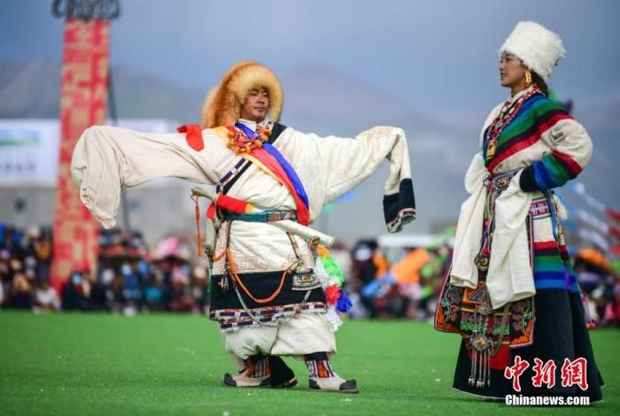 資料圖為西藏自治區(qū)拉薩市當(dāng)雄縣賽馬節(jié)上的藏族傳統(tǒng)服飾表演。 中新社記者 貢嘎來松 攝