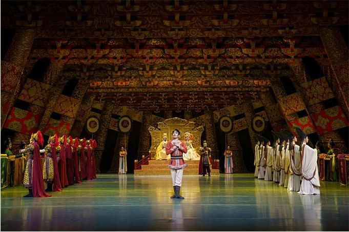 “大家可以看到,在這部舞劇中既有非常濃郁的盛唐風格,也有非常鮮明的西域文化特點?!蔽鑴 秱鹘z公主》總導演左青表示。舞臺上的每一幕都有情景定位、情節(jié)助推、情感渲染、情調(diào)濡潤,兼具依托文本結構的真情訴說和舞蹈本體的詩意表達,構建起舞劇的整體形式感。