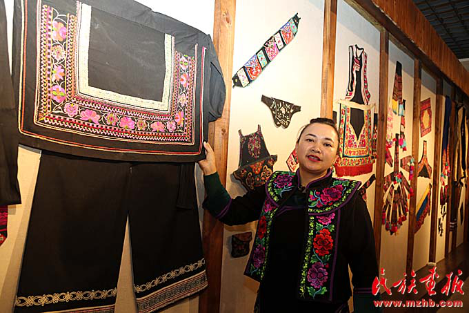 墻上的刺繡物品均是李長征從各地收集來的,最久的飾物距今有200多年歷史(民族畫報(bào)曾穎 攝影)