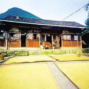 聚居石阡的仡佬族民居為不封閉的院落式,即三合院式。主房是建在高臺(tái)基上的瓦房,兩側(cè)廂房是干欄式吊腳樓,樓下為畜圈、存燒柴處,樓上住人,放置糧食和雜物,所形成的院落都鋪著石板,以利秋收時(shí)作曬場。