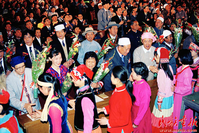 1988年4月25日至29日,首次全國民族團結(jié)進步表彰大會在北京舉行,圖為大會現(xiàn)場.《民族畫報》1988年第8期