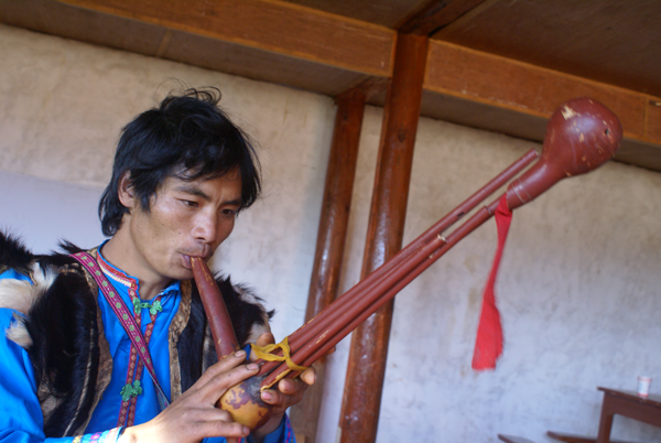 傈僳族民間器樂藝術(shù)具有獨特的民族風(fēng)格和特色,在傈僳族民間音樂中有重要地位。其種類主要有琵琶(劉軍攝)、口弦、竹笛、葉笛、葫蘆笙(劉軍攝)、二胡等。