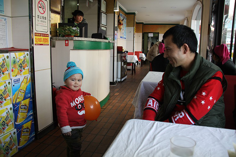新疆村飯館老板伊明江和他的孩子