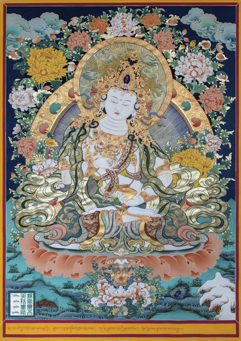 金剛薩埵,梵文Vajrasattva 或Vajrasattva mahāsattva,音譯哇指拉薩特哇摩哈薩特哇,譯名執(zhí)金剛,持金剛,金剛手,金剛手秘密主,金剛薩埵,金剛手菩薩摩訶薩,金剛手薩埵摩訶薩埵等。薩埵者有情之義,勇猛之義,總言勇猛之大士。‘金剛薩埵’一語,象征‘堅(jiān)固不壞之菩提心’與‘煩惱即菩提之妙理’。此名稱于密教中,所指有四::(一)指密教傳法之第二祖。(二)為金剛界曼荼羅中,金剛部院三十七尊之一。(三)為金剛界曼荼羅理趣會(huì)中,十七尊中之主尊。(四)為胎藏界曼荼羅金剛部院‘大智金剛部’之主尊。Vajrasattva (梵音之羅馬字轉(zhuǎn)寫形式))由Vajra和Sattva兩個(gè)詞組構(gòu)成。Vajra漢文音譯的寫法之一是跋折羅,漢文意譯:金剛。《金剛頂經(jīng)疏一》釋義:“世間金剛有三種義:一不可破壞,二寶中之寶,三戰(zhàn)具中勝”。Sattva漢文音譯薩埵,意為有情,其世間之義泛指一切有情;mahāsattva 意譯為大士,出世間之義是勇猛大士。Vajrasattva漢譯金剛薩埵,是佛教典籍中與普賢菩薩同體異名的圣尊。釋迦牟尼佛曾在經(jīng)典中說有三部佛、五部佛、千部佛乃至無數(shù)諸佛,而其中的主尊就是金剛薩埵,就象一個(gè)王國(guó)中有國(guó)王、大臣、平民等各式人等,但其中最尊貴的是國(guó)王一樣,金剛薩埵是“如海諸部壇城主”。禮敬金剛薩埵的咒語為“南無 谷乎 哇指拉 薩特哇耶”,梵文 Namo Guru Vajrasattvāya。意思是:向眾生依祜之主金剛薩埵圣尊致以皈依的敬禮! “南無俱盧跋折啰薩埵耶”是用繁體漢字音譯的梵語。南無:讀音 na-mo,皈命之義;俱盧:讀音 guru,眾生依祜之主、圣尊之義;跋折啰薩埵:讀音 ban-zer-sa-duo,金剛薩埵圣號(hào);耶:讀音 ya,起增上語義之作用。全句譯成現(xiàn)代漢語的意思是:向眾生依祜之主金剛薩埵圣尊致以皈依的敬禮。