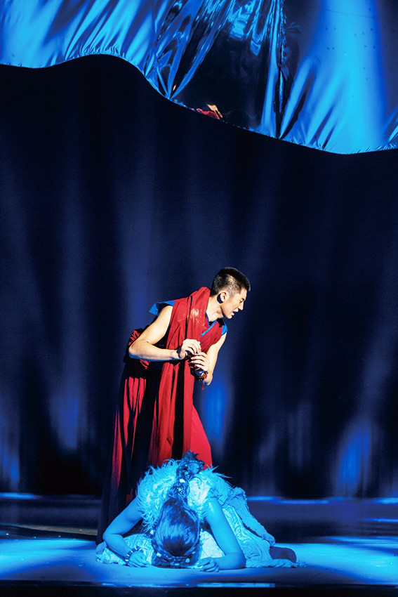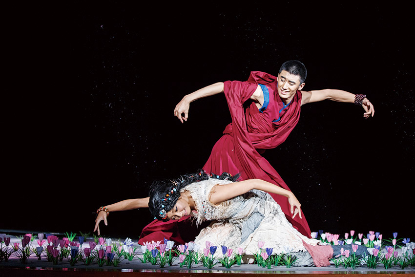 為何我們會(huì)記住倉(cāng)央嘉措?無(wú)論你是否到過(guò)西藏,你看了這部舞劇后最終都會(huì)明白,因?yàn)樗且晃粍?dòng)人心魄的情僧。他的情詩(shī),亦是情花,遍灑在這片土地上,令繁花盛開(kāi),情緣流長(zhǎng)。我們難以忘懷的不是這位達(dá)賴(lài)?yán)飩髌娴纳矸?,而是他?duì)家鄉(xiāng)深深的眷念,對(duì)情愛(ài)的難以割舍。歲月無(wú)情亦有情,它做了時(shí)間的信差,傳遞了300年前的故事。面對(duì)情感,無(wú)論多么堅(jiān)強(qiáng)的心都會(huì)變得柔軟。所以每一個(gè)讀過(guò)倉(cāng)央嘉措詩(shī)歌的人,都會(huì)陷入那濤濤的情海里難以自拔。
