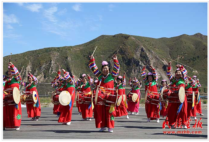 圖們市,隸屬于吉林省延邊朝鮮族自治州,位于吉林省東部,長白山脈東麓。圖們市的圖們江廣場環(huán)境幽雅,綠樹成蔭,廣場內鼓聲隆隆、彩裙飄飄,近百位身著朝鮮族服裝的老人們斜挎長鼓,翩翩起舞。鼓聲的鏗鏘映襯老人綻放的笑臉,一種“延邊特色”的幸福感便撲面而來。與朝鮮南陽市隔江相望的圖們江畔第一城圖們市以民族傳統(tǒng)文化為媒,奏響了文化興邊新樂章。