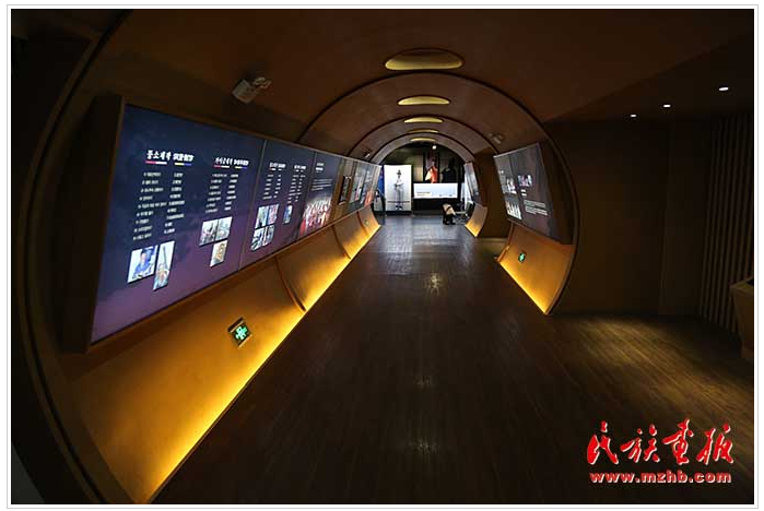一樓展廳主題為“舞樂風情”,展廳墻體為一道曲線,別致新穎,據(jù)了解,展示舞蹈的曲線墻設計靈感來自朝鮮族象帽舞?!跋竺蔽琛笔寝r(nóng)樂舞拓展項目,國家級非物質文化遺產(chǎn),是朝鮮族“農(nóng)樂舞”中表演難度和藝術價值最高的表演形式。參觀者走進互動體驗區(qū),可以戴上象帽體驗飄帶飛舞的熱烈奔放感?!跋竺蔽琛钡娘h帶不斷向上盤旋,代表著朝鮮民族對未來生活的祝福。