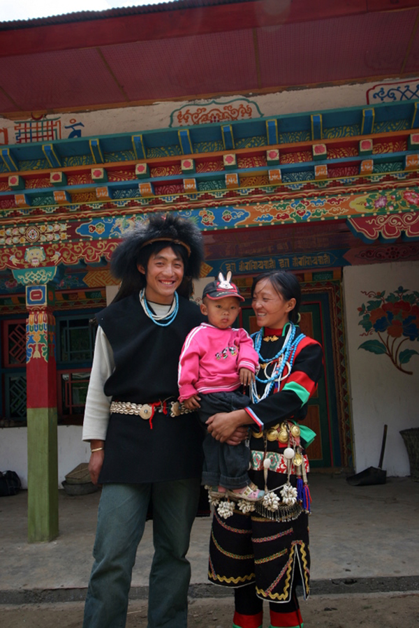 隨著氏族制的解體,女子的社會地位逐漸下降,男子看重女子的貞操,因此公房因不合時宜而慢慢消失,由長房取代?!伴L房”崩尼語為“南塔”,與邦戈的區(qū)別在于其內(nèi)部有隔墻,在每個居室里設(shè)有火塘,有的一個家族住在一座長房內(nèi),形成一個大家庭。珞巴族大家庭形成的原因一般是一夫多妻或奴隸較多,妻子最多的有十多個,多妻的主要原因是富有的男子可以隨意買賣女子或者是轉(zhuǎn)房。這種家庭的居住形式主要有各妻子不分居和不分居兩種,在丈夫的主持下共同生產(chǎn)生活。就珞巴族家庭形態(tài)的總體來看,仍以一夫一妻制的小家庭為主,因此存在長屋的同時,每個部落都建有供一夫一妻的個體家庭居住的獨立小房,或為干欄式,或為地居式。