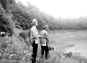 記得小時(shí)候有一回上學(xué),我在“之”字形的山道上遇到一撥“背腳佬”。只見(jiàn)他們那布滿蚯蚓般青筋的腿肚顫抖著,手中鑲著鐵釘?shù)拇蜩圃谑迓飞隙‘?dāng)?shù)貫R出火星,草鞋里的雙腳踏著堅(jiān)實(shí)的土地。每當(dāng)轉(zhuǎn)過(guò)一個(gè)彎,他們就一邊把打杵支在背簍下面,一邊發(fā)出“哎——喲嗬——”的吼聲。抹下一串汗珠,疲勞仿佛也被扔下山,引起陣陣回響。不知是誰(shuí)還吼起了粗獷的山歌:“郎在高山打傘來(lái),姐在房中做花鞋,雙手接過(guò)郎的傘,用手把姐抱在懷……”