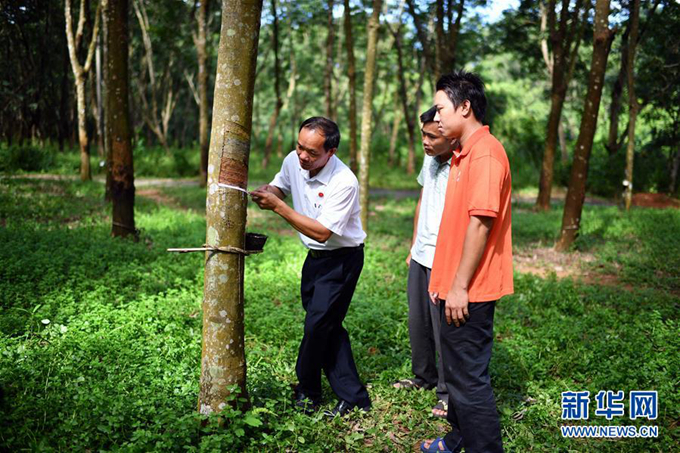 村民不想種,羊風(fēng)極和黨員干部們帶頭種;沒(méi)錢,他到鎮(zhèn)里、縣上跑扶貧種苗,幫助貸款;沒(méi)技術(shù),他邀請(qǐng)熱科院專家前來(lái)給村民們培訓(xùn)橡膠管理和割膠技術(shù)。廣泛宣傳和示范帶動(dòng)加上熱心的服務(wù),村民們開(kāi)始跟著他種植橡膠樹(shù)。如今,全村的山地基本上都種上了橡膠樹(shù),僅此一項(xiàng),去年村民人均收入就達(dá)約6000元。