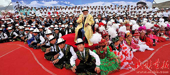 一部悠長、渾厚、動人的英雄史詩,一頂象征高山雪峰的白氈帽,一把古老的三弦彈撥樂器庫姆孜,以及五彩繽紛的刺繡、花氈,灑落在草原深處的氈房,千百年來,古老的帕米爾高原不僅孕育了雄偉挺拔的山川和茫茫無垠的戈壁,更積淀了源遠流長、絢麗多彩的歷史和文化。