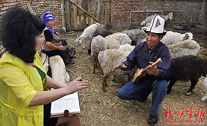新疆維吾爾自治區(qū)民間文藝家協(xié)會工作人員在阿圖什市哈拉峻鄉(xiāng)挖掘整理《瑪納斯》
