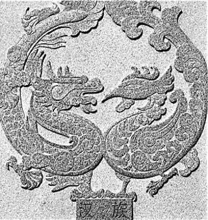 龍鳳從原始社會時期就作為大自然神秘力量的象征受到崇拜。到了封建社會,龍鳳是皇權的標志,龍是皇帝的化身,鳳則為皇后的化身?;实鄣娜菝病⑸眢w、服裝、座位、床鋪等等都冠“龍”字,如真龍?zhí)熳?、龍體、龍床。而與皇后有關的事物,則往往冠以鳳字,如鳳冠、鳳輦、鳳樓等等。漢民族對龍鳳的崇拜,滲透到生活的各個領域,形成一系列特殊的傳統(tǒng)習俗。人們相信龍能夠變化飛騰,行云布雨,大旱之年常舉行求龍降雨的儀式。元宵節(jié)耍龍燈,端午節(jié)龍舟競渡等民間習俗的形成也都與龍的崇拜有關。由于龍的形象威武嚴肅,象征個性的堅毅剛強,所以漢族民間喜以“龍”作為男性的命名;而鳳的形象艷麗優(yōu)美,象征女性的美貌溫柔,民間又有喜以“鳳”作為女性命名。由于人們對龍鳳的崇拜,千百年來,龍鳳形象的紋飾遍見于繪畫、工藝美術、雕刻、建筑裝飾以及民間文藝創(chuàng)作之中,成了漢族傳統(tǒng)文化的象征。龍鳳呈祥圖案是受人喜愛的一種吉祥圖案。在畫面上,龍鳳各居一半。龍是升龍,張口旋身,回首望鳳;鳳是翔鳳,展翅翹尾,舉目眺龍。周圍瑞云朵朵,一派祥和之氣。龍鳳呈祥圖案象征高貴、華麗、祥瑞、杰出。