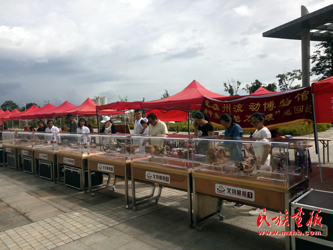 “去年我們?nèi)チ宋涠ōh(huán)州鄉(xiāng)小學(xué),大車開過去5個(gè)多小時(shí)。我記得有個(gè)三年級(jí)的小朋友看了展覽,激動(dòng)得熱淚盈眶。他說早知道州里有個(gè)博物館,但從來沒想到還能在家門口看到?!碧K輝介紹說,“每一次流動(dòng)展覽,都要帶去一個(gè)專題,爭取講深講透。那次帶了恐龍的頭骨、脛骨,還特別安排了一塊恐龍骨讓孩子觸摸?!碑?dāng)一件件珍貴的恐龍化石、世界最古老的銅鼓、亞洲最早古人類化石、精美的彝族傳統(tǒng)服飾走出博物館深院呈現(xiàn)在田間地頭、鄉(xiāng)村校園、軍營操場時(shí),博物館與群眾更近了,文化惠民更接地氣了。流動(dòng)博物館成了民族文化傳播的載體和民族情感融合的橋梁。