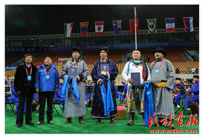 “鄂爾多斯鄂爾奇”第四屆國(guó)際蒙古搏克金腰帶爭(zhēng)霸賽冠軍得主查干扎那