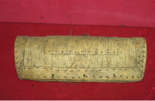 鄂倫春族素有“白樺民族”之稱,白樺樹皮制品種類非常多,大到可以乘人載物的樺皮船、圍蓋“仙人柱”的“鐵克沙”,小到可以裝在衣兜里的煙盒和含在口中的狍哨,提水用的桶、采集用的簍、裝物用的箱、盛飯用的盆、吃飯用的碗、喝酒用的蠱等等。樺樹皮制品的裝飾圖案可以通過壓劃、壓?。c刺)、剔刻、烙燙、補花、繪畫等多種方法形成。壓印點刺是最常用的裝飾手段,工具是用獸骨制成的,分單齒、雙齒、多齒和簡單幾何形幾種。先在剪裁好的器物材料上,用壓、打等方法點刺出裝飾紋樣,再縫合成器物成品。這種裝飾多為素面凹形花紋,顯得樸實單純,而且器物越陳舊樺皮顏色越深,越有光澤,圖紋越清晰。也有人在壓打線上著色,這便形成了另一種風(fēng)格,美觀艷麗而且突出了物象特征。