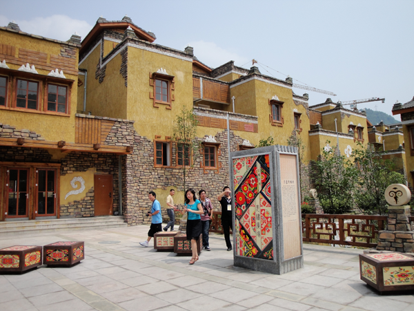 汶川地震災(zāi)后重建綜合體現(xiàn)藏、漢、羌族特色的標志性建筑(王鐵志攝影)