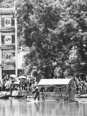 廣西桂林恭城瑤族自治縣“五一”期間在平安鄉(xiāng)社山村、蓮花鎮(zhèn)紅巖村等旅游景點,舉行了瑤家小鍋米酒坊、原生態(tài)腐竹制作體驗、瑤族水上婚嫁表演等活動,豐富了群眾的文化生活。圖為獨特的瑤族水上婚嫁表演,吸引了許多游客駐足觀賞。