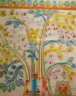 “唐卡”也叫“唐嘎”、“曼湯”,系藏語譯音。唐卡的起源,至今沒有史料給予精確的記載。據(jù)藏史記,兩千多年前在西藏修建的第一座宮殿——雍布拉宮的墻壁上就繪有壁畫,由此說明唐卡的雛形是源于壁畫。有的學(xué)者認為,最早的唐卡是繪制在獸皮上,它起源于牧業(yè)文明的雅礱文化時期。唐卡可分為兩大類,一類是用絲絹制成的唐卡叫“國唐”,另一類是用顏料繪制的唐卡叫“止唐”。常說的80幅醫(yī)學(xué)唐卡即“止唐”中的一種,全稱為彩色繪畫唐卡。彩繪唐卡是依據(jù)《四部醫(yī)典》這部巨著,在公元1730年五世達賴授意第司·桑結(jié)嘉措組織藏區(qū)著名醫(yī)學(xué)家、繪畫大師通過對尸體解剖、藥材實物考察,以科學(xué)態(tài)度整理繪制的,又被稱為《四部醫(yī)典系列掛圖》,掛圖的繪制使《四部醫(yī)典》這部博大精深的醫(yī)著史書簡明易懂。西藏自治區(qū)藏藥廠的陳列室藏這珍貴的歷史資料——醫(yī)學(xué)唐卡,幾百年過去了,唐卡色彩依然明亮艷麗、工筆細膩、活靈活現(xiàn),栩栩如生。繪制唐卡的原料全部是用金、銀、珍珠、瑪瑙、珊瑚、松石、孔雀石、朱砂等珍貴的礦物寶石和藏紅花、大黃等天然植物做顏料制作而成,使唐卡有著非常高的純度和穩(wěn)定性。第司·桑結(jié)嘉措完成的唐卡有79幅,加附由第司·桑結(jié)嘉措親筆題詩加蓋印章的一幅歷代名醫(yī)圖,組成“80幅唐卡”。80幅唐卡,從藥王及藥王城(藏醫(yī)學(xué)基礎(chǔ)理論的建立),人體生理病理、診斷、治療的樹喻學(xué)說,病因、癥狀和分類,藏藥的藥物理論和分類,防病、診斷和治療、養(yǎng)生方法, 生動形象地反映了藏醫(yī)藥學(xué)發(fā)展的進程和偉大實踐。藏醫(yī)彩繪唐卡除了有極高的教學(xué)價值外,還有很高的民族學(xué)、歷史學(xué)、佛學(xué)及繪畫學(xué)價值,是研究藏文化的珍貴資料,其卷幅之多、內(nèi)容之廣博、構(gòu)思之巧妙、畫工之精湛堪稱世界醫(yī)學(xué)掛圖之最,是藏醫(yī)學(xué)對世界醫(yī)學(xué)的珍貴貢獻。詳細名目如下: