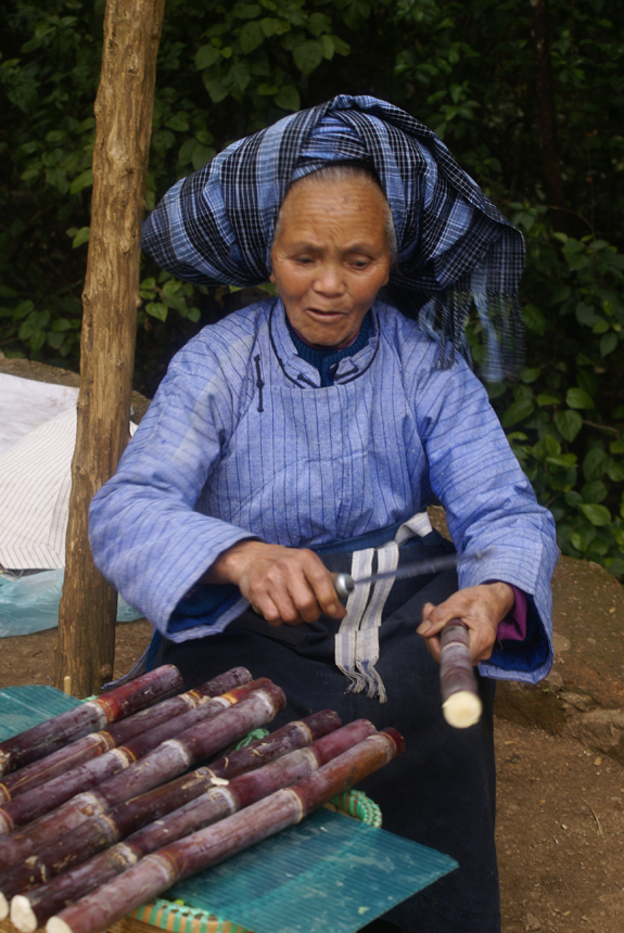 孝敬父母,尊敬老人在布依族人看來是天經(jīng)地義的事,民間有“天上雷公大,天下父母大”“飲酒先敬父,吃肉先敬兄”“山大長雜草,人大養(yǎng)父母”等諺語。布依族在尊老方面,有具體的言行規(guī)范和細則,違之則會受到社會的譴責。家里再窮也要盡心贍養(yǎng)老人,不得怠慢。與老年人或長輩同行,必須讓他們走在前面;同行時有10歲以下的小孩兒,也要讓其走在前面。路上見老年人或長輩挑東西,若是順路必須為他們挑一段路程,甚至送到家。生活上,吃飯時要先請老人,席間,晚輩要主動為長輩盛飯、拈菜,雞頭、雞肝、雞心一定要敬給老人吃?;ㄏ?zhèn)山村布依族就餐時,由老人先將桌上的每一道菜都動過一輪后,小輩才能吃(圖為賣甘蔗的布依族老人,劉軍供圖)。