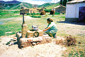 新疆額敏縣喀拉也門鄉(xiāng)加拉克村夏季在室外的土鍋灶
