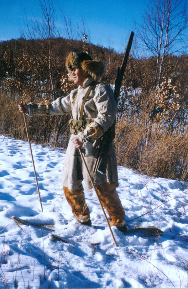 肯古楞,即滑雪板,是達(dá)斡爾人早期交通工具?;┌逵盟赡?、樺木板制作,約長(zhǎng)1.2米、寬15厘米,前端翹起。在底面貼帶毛的野公豬脊皮,鬃毛向后,或貼夏季的狍子脊皮,以減少摩擦,提高滑速?;r(shí)雙手撐桿,在冬季雪厚時(shí)在山野中代步或追蹤野獸。