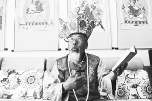 “東巴,在納西語里意為活佛或智者。”在玉龍納西族自治縣圖書館,李瑞山一邊講解,一邊向筆者展示館藏文物,這其中包括占卜紙牌畫、祭祀法杖和東巴經(jīng)等。引起筆者注意的是一幅形似唐卡的卷軸畫,畫中的主人公竟是藏族詩人倉央嘉措?!坝脰|巴文所寫的《卓伯所》一書里,記載了納西族與藏族、白族先民之間同宗共祖的兄弟關(guān)系,這點(diǎn)與木氏宗譜碑上所刻是一致的。所以,我們有關(guān)于藏族的記載并不奇怪,民族交融自古就有?!?/p>