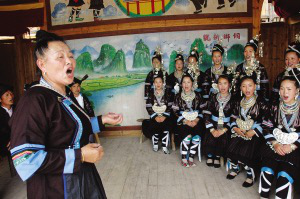 2012年6月6日,中國非物質(zhì)文化遺產(chǎn)保護中心在北京向全國60位傳承人頒發(fā)了“中華非物質(zhì)文化遺產(chǎn)傳承人薪傳獎”,吳品仙是貴州唯一獲得此獎項的侗族大歌傳承人。談到侗歌時她如數(shù)家珍,翻開幾大摞侗族大歌的資料說:“我用30年時間整理的1700多首侗族大歌,覆蓋了黎平縣的91個侗族寨子的。因為侗族沒有文字,我用同音的漢語記錄了侗語歌詞,把每首侗歌的發(fā)音用簡譜譜了曲,便于后人傳承研究?!?/p>