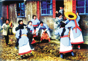 花瑤山寨獨(dú)具個(gè)性的婚俗活動(dòng),除了對(duì)新人的美好祝福,也是妹子們亮衣裳、亮嗓音、亮智慧和尋覓心上人的大好時(shí)機(jī)?!白顗牡娜司褪敲饺斯覀兘忝脗兂ο嗵?,從不分離,卻被他們一個(gè)個(gè)給騙走了!”山寨里的妹子都這樣懷恨媒人公(可誰(shuí)也離不開(kāi)他們喲)。在妹子們的眼中,前來(lái)送禮、接親的漢子,都是些不懷好意的媒人公,非教訓(xùn)一回不可——婚俗中的狂歡“打泥巴”便開(kāi)始了。