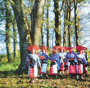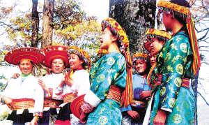 這是一個(gè)特別愛(ài)美的民族。男人們著裝瀟灑隨意,頭纏黑白相間的方格頭帕,倍顯英俊。女人們則身穿黛藍(lán)色對(duì)襟長(zhǎng)衫,鑲著的紅布邊和紅布扣純?yōu)檠b飾。下著素艷相融的花裹裙,腰纏五顏六色的腰帶,頭上再配一個(gè)后面吊有長(zhǎng)長(zhǎng)彩須、狀似倒扣斗篷的火紅頭巾,把個(gè)茫茫綠野點(diǎn)綴得山花爛漫、如畫(huà)如詩(shī)。