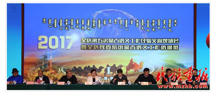 2017年11月28至29日,內(nèi)蒙古自治區(qū)第五次蒙古語文工作經(jīng)驗交流現(xiàn)場會暨全區(qū)民委系統(tǒng)蒙古語文工作培訓(xùn)班在內(nèi)蒙古自治區(qū)阿拉善盟召開