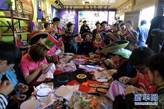 土族人的盤繡歷史悠久,工藝獨具匠心,有較高的文化價值,2006年被列入第一批國家級非物質(zhì)文化遺產(chǎn)名錄。盤繡源于青海省互助土族自治縣,十八大以來,互助縣土族自治縣將勞動力培訓轉(zhuǎn)移和市場需求結(jié)合起來,發(fā)展具有地方民族特色的土族盤繡培訓項目,把發(fā)展土族盤繡作為擴大農(nóng)村婦女增收就業(yè)的渠道之一。目前,全縣有2萬余名婦女從事土族盤繡工藝品的制作,使盤繡這一古老的手工藝得到傳承和發(fā)展,通過一針一線間實現(xiàn)了土族文化與世界文化的交流。