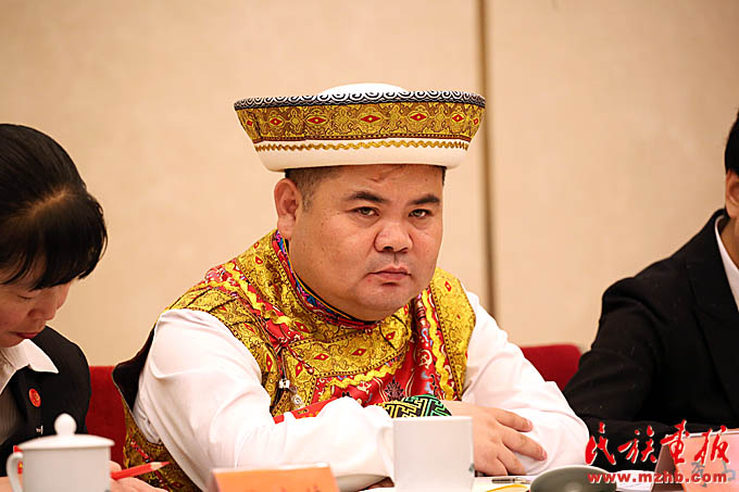 十九大代表、青海省互助土族自治縣林川鄉(xiāng)黨委書記李占魁(土族)在青海省代表團討論會上發(fā)言 (滕俊 攝影)