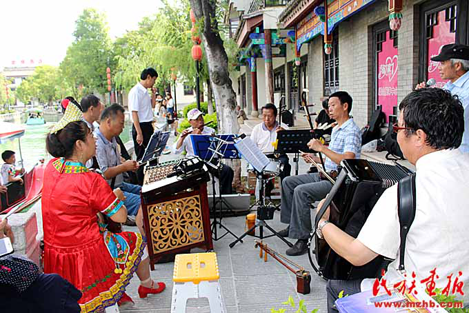 民樂隊是古鎮(zhèn)清明河畔一道靚麗的風(fēng)景