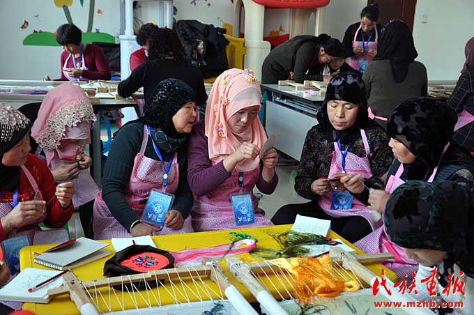 東鄉(xiāng)縣婦聯(lián)開展的手工編織技能培訓使更多東鄉(xiāng)族婦女利用刺繡等一技之長增加了家庭收入(胡發(fā)偉 攝影)