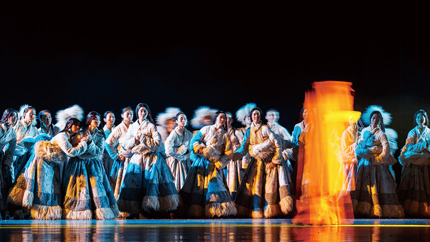 2015年12月27~29日,中央民族歌舞團(tuán)大型原創(chuàng)舞劇《倉央嘉措》在民族劇院隆重上演,引起轟動。這是2015年度國家藝術(shù)基金最高資助項(xiàng)目,也是中央民族歌舞團(tuán)建團(tuán)60余年來創(chuàng)排的首部舞劇。它由中央民族大學(xué)博士生導(dǎo)師丹珠昂奔教授編劇,國家一級導(dǎo)演、中央民族歌舞團(tuán)團(tuán)長丁偉擔(dān)任總導(dǎo)演,國家一級作曲家李滄桑、著名舞臺服裝設(shè)計(jì)師麥青等國內(nèi)知名藝術(shù)家聯(lián)袂制作。舞劇共分五幕,時(shí)長159分鐘,參與演出的舞蹈演員有60多人。劇組通過海選的形式,選出3名年齡分別為14歲、17歲、20歲的優(yōu)秀舞蹈演員扮演不同時(shí)期的倉央嘉措。整部舞劇通過豐富的舞蹈語言以及精心制作的音樂、服裝、舞美,將主人公倉央嘉措對故鄉(xiāng)、母親的熱愛以及對愛情的向往淋漓盡致地展現(xiàn)在舞臺上,同時(shí)集中展示了他身后燦爛而輝煌的民族文化。