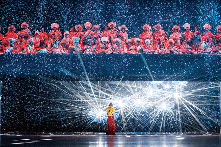 為何我們會記住倉央嘉措?無論你是否到過西藏,你看了這部舞劇后最終都會明白,因?yàn)樗且晃粍尤诵钠堑那樯?。他的情詩,亦是情花,遍灑在這片土地上,令繁花盛開,情緣流長。我們難以忘懷的不是這位達(dá)賴?yán)飩髌娴纳矸?,而是他對家鄉(xiāng)深深的眷念,對情愛的難以割舍。歲月無情亦有情,它做了時(shí)間的信差,傳遞了300年前的故事。面對情感,無論多么堅(jiān)強(qiáng)的心都會變得柔軟。所以每一個(gè)讀過倉央嘉措詩歌的人,都會陷入那濤濤的情海里難以自拔。