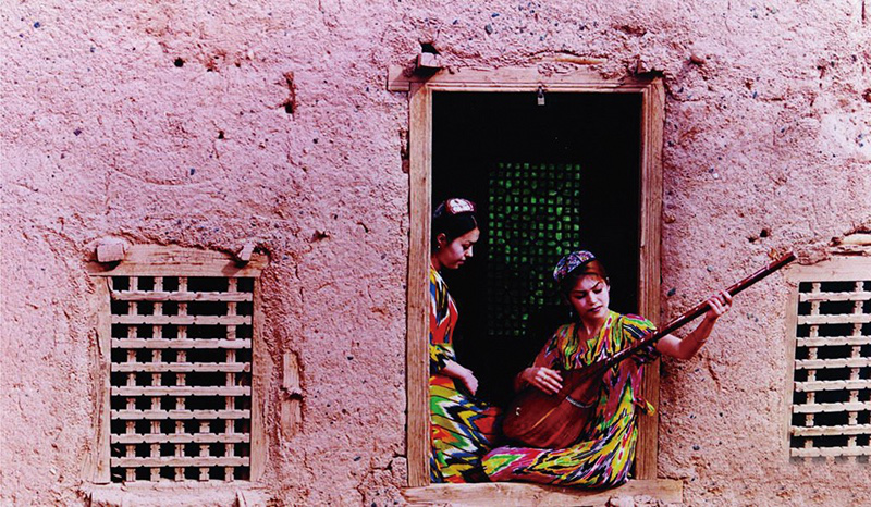 我沒有聽完就匆匆上了車,一會兒,又下來了。我在他裸露出來的口袋里放了一張10元鈔票。但直到上車我才得知,少年名叫木合買提,今年還不到20歲。他的父親是這個村子里小有名氣的木卡姆藝人。木合買提生下來眼睛就看不見東西,也沒上過學(xué),但是喜歡熱鬧,村子哪里有木卡姆聚會,就要人帶著他去。他從小就喜歡拉琴,可天賦不高,家里人也就隨他去了。我有些懊悔:錢當(dāng)然有用處,可村子里的人把他喜歡拉琴、喜歡木卡姆看作是一件很平常的事情,并沒因?yàn)檫@個而施舍他。他應(yīng)該得到尊重。車走了一會兒,我扒著車窗回頭看,那位盲人少年還懷抱著琴,面向陽光站著。