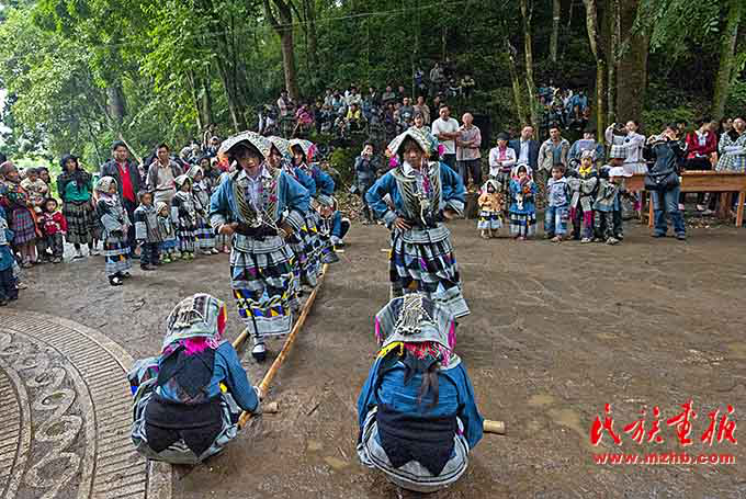 在節(jié)日期間,倮人歡快地跳起竹竿舞