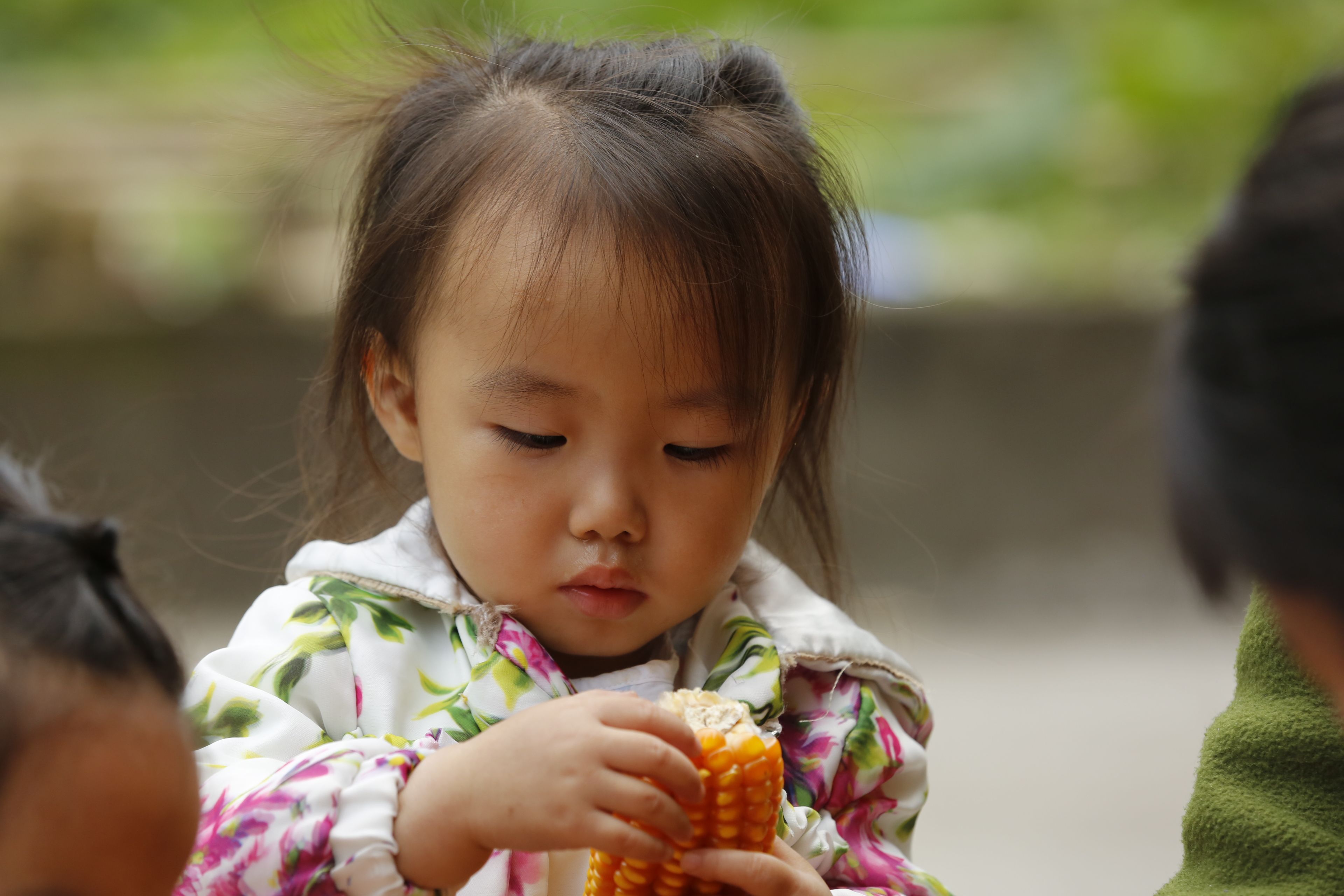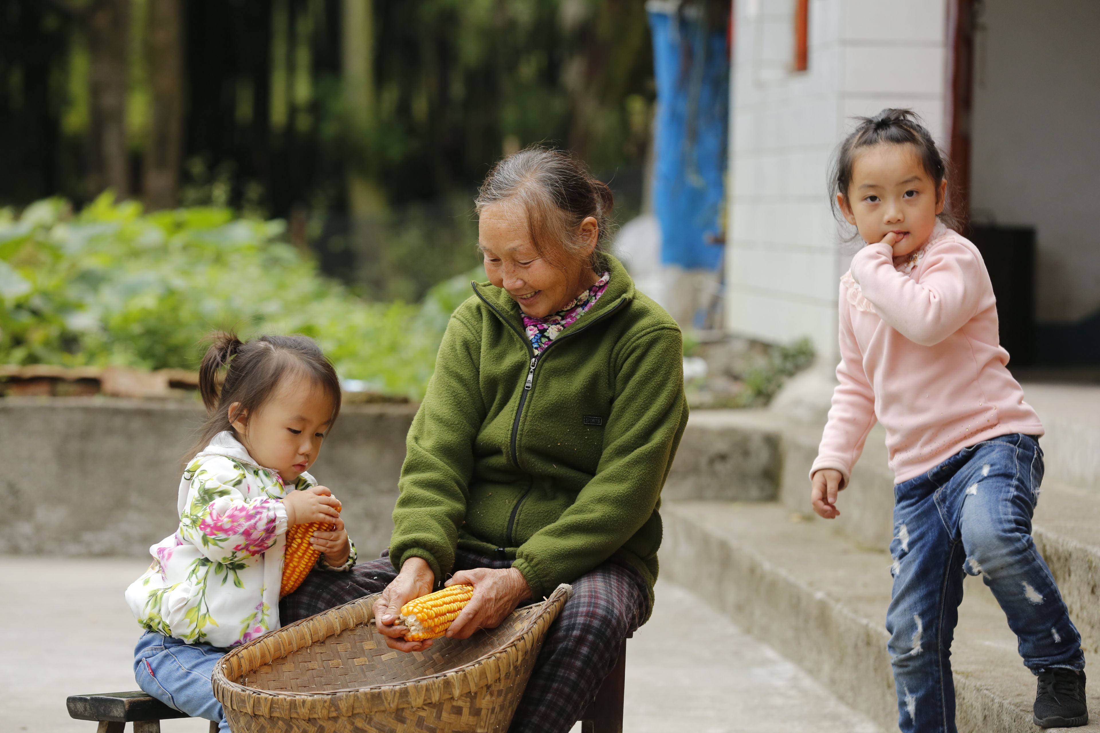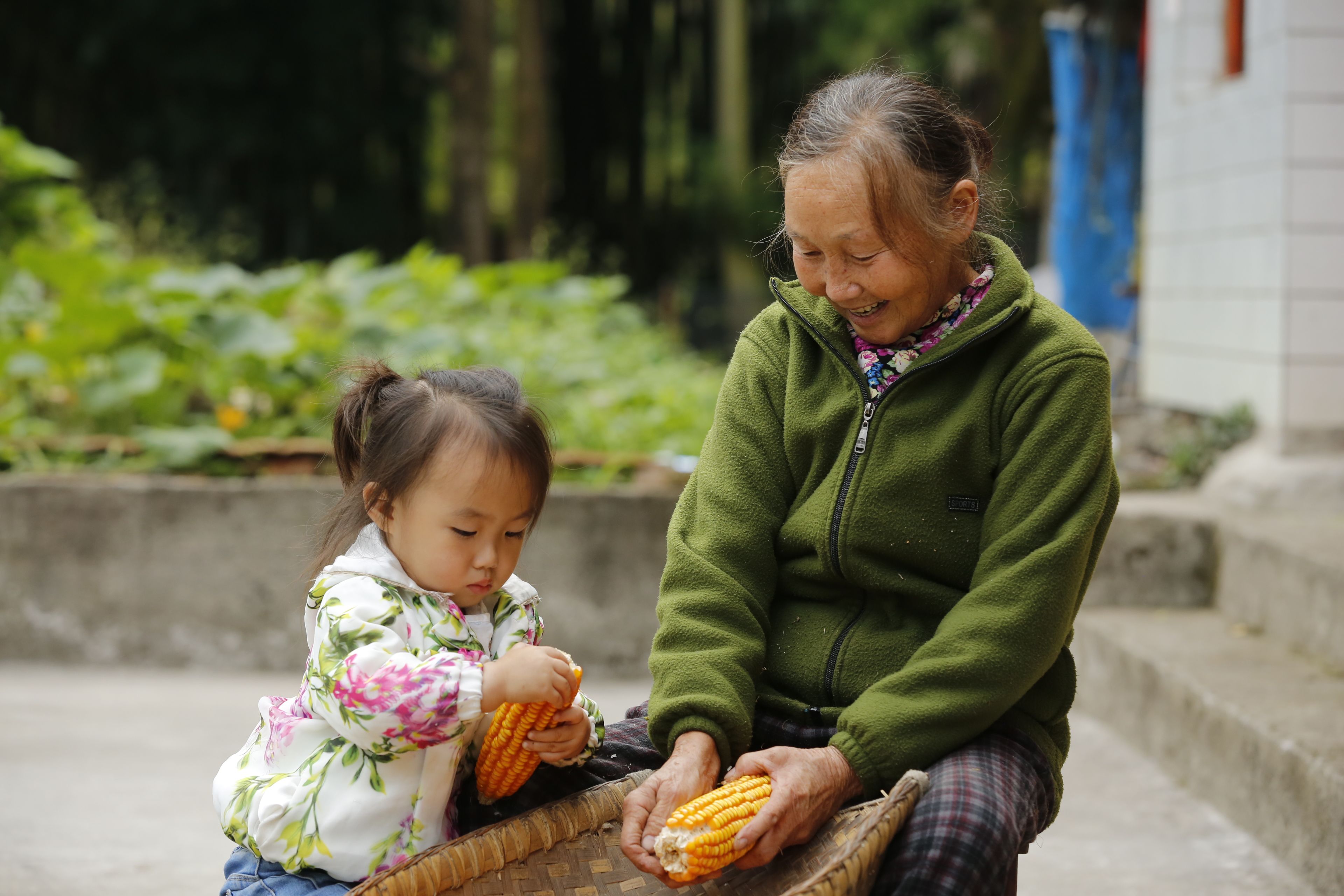 苗族日常生活-老年人與兒童剝玉米2