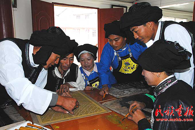 為了提升作品質(zhì)量,阿峨新寨村的版畫(huà)創(chuàng)作者邀請(qǐng)專家對(duì)其進(jìn)行藝術(shù)指導(dǎo)