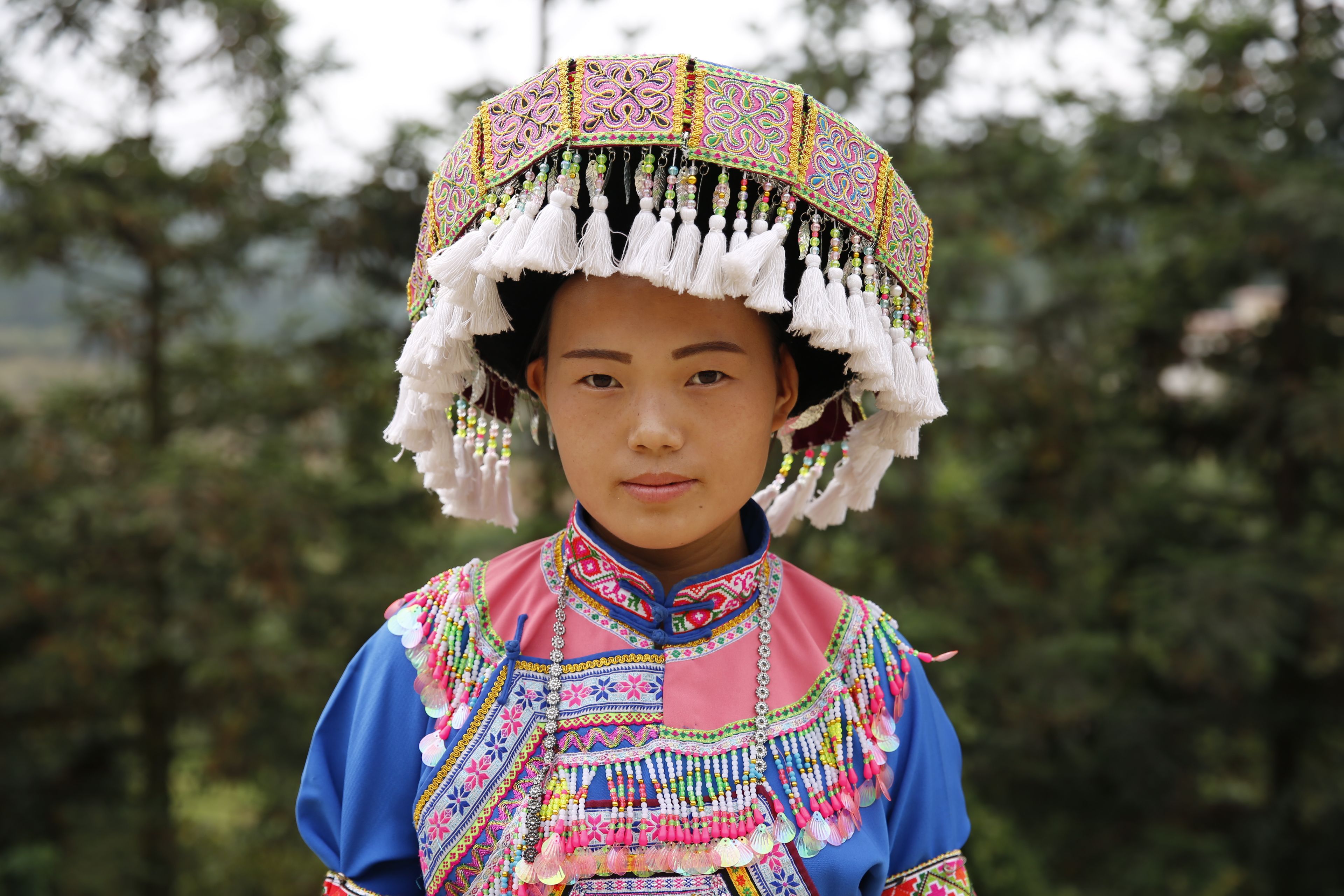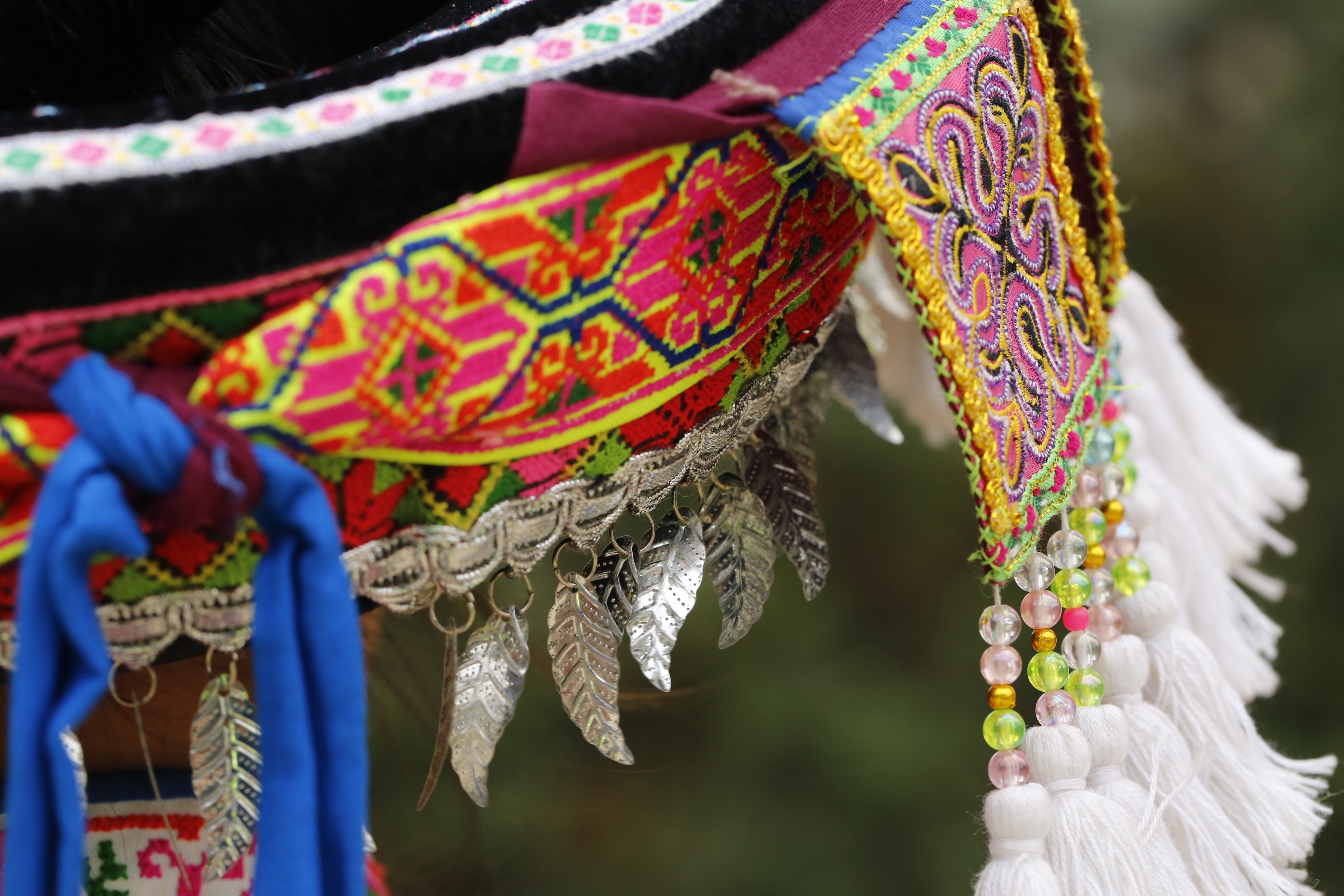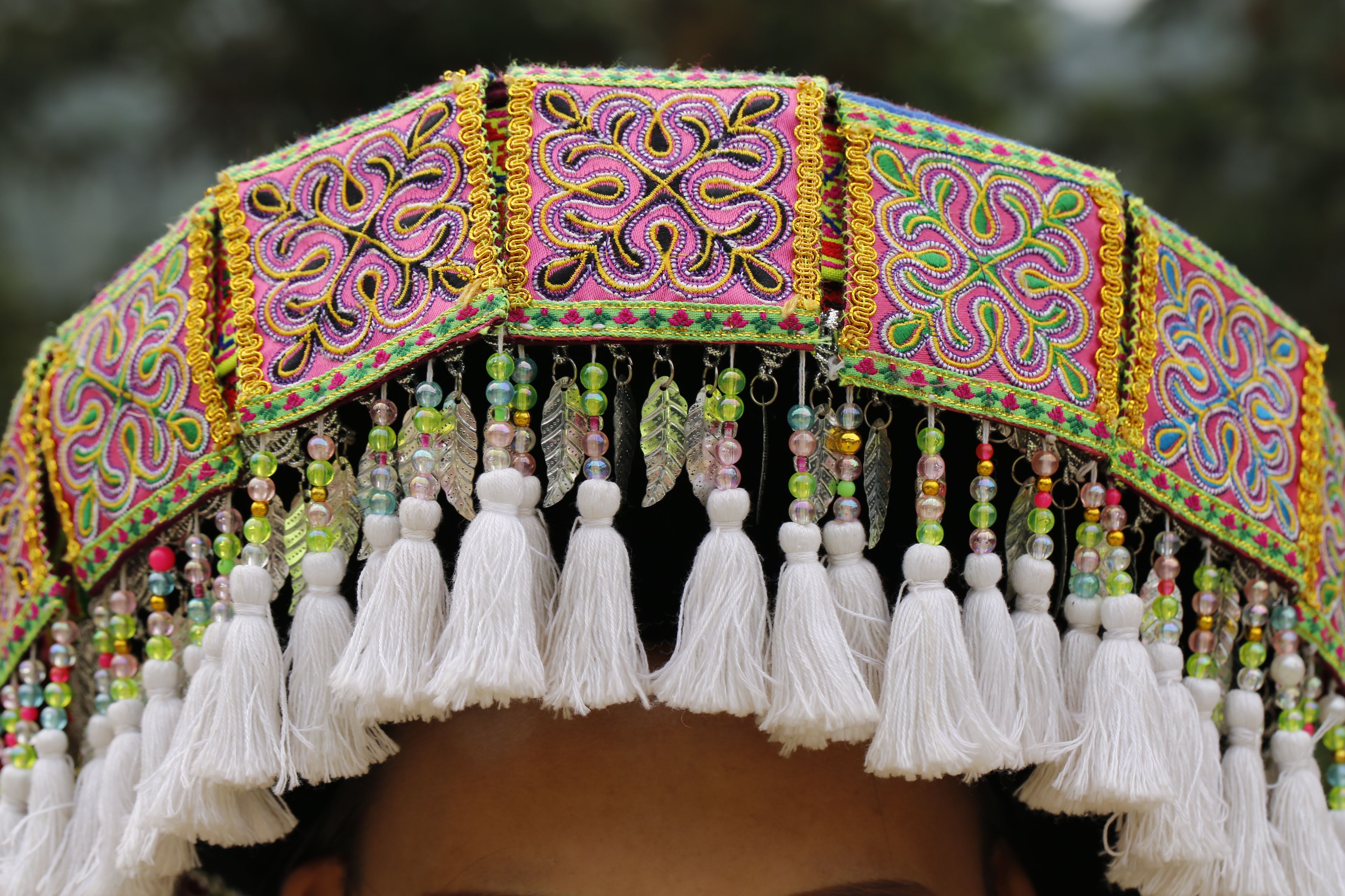 苗族女子服飾花帽周圍裝飾2