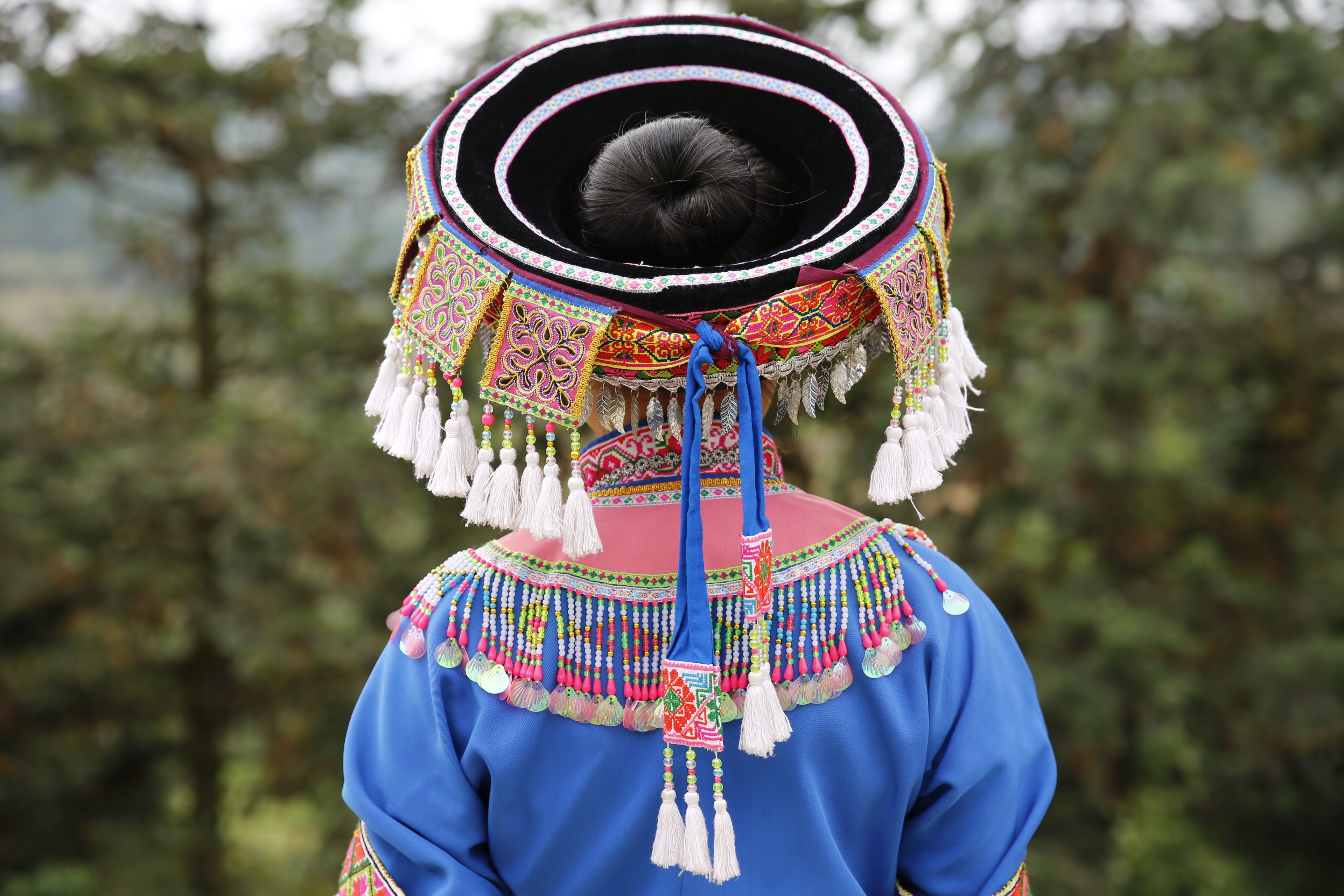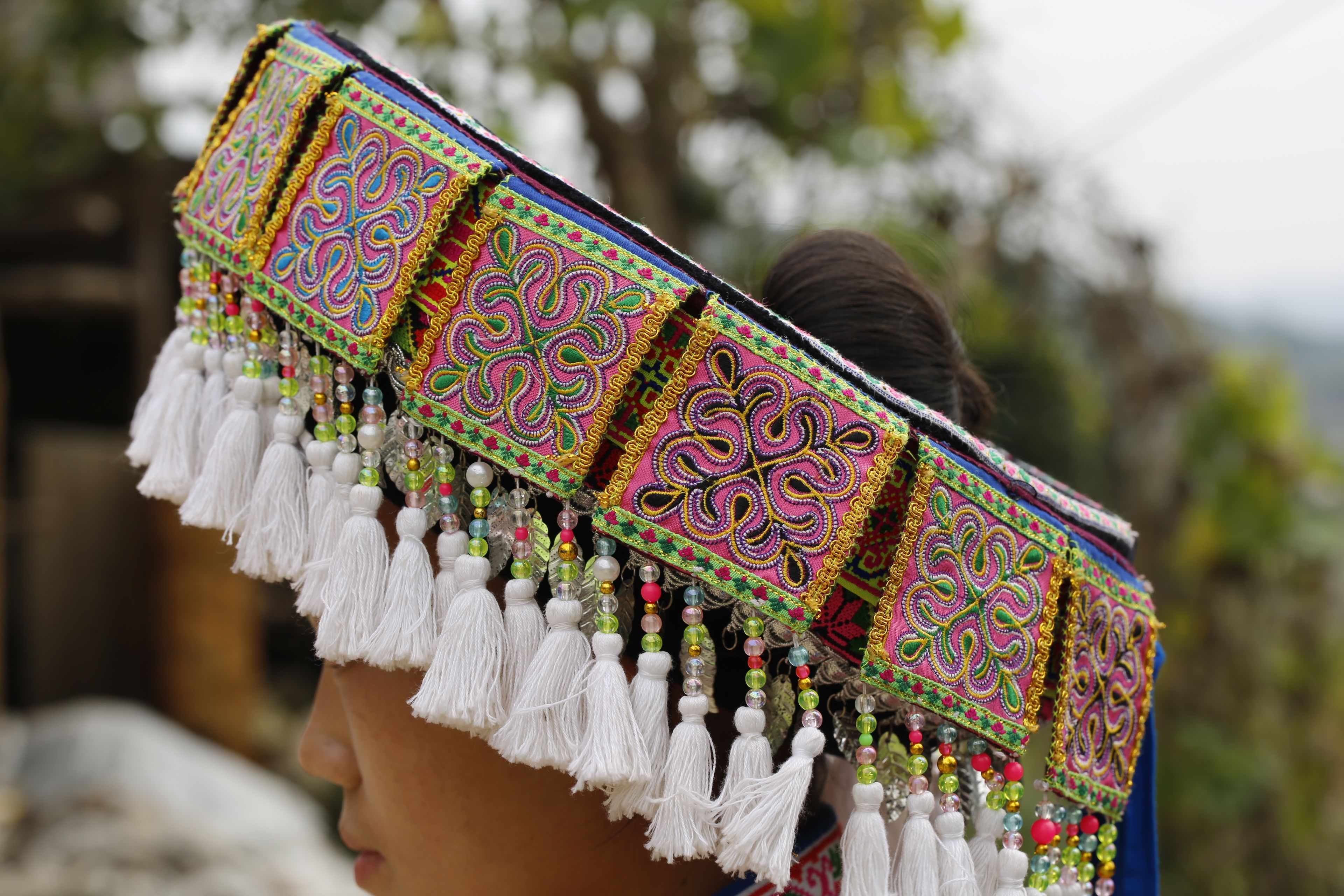 苗族女子服飾花帽-背面繡花及裝飾