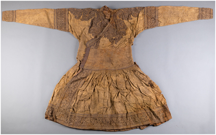 1978年出土于內(nèi)蒙古包頭達(dá)茂旗明水墓的蒙元辮線袍 內(nèi)蒙古博物院館藏一級(jí)文物