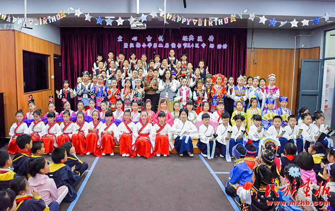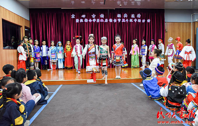 同一天下午,一場(chǎng)精彩的T臺(tái)秀在上海市閔行區(qū)梅隴鎮(zhèn)弘梅小學(xué)上演。小學(xué)生們身著民族服裝亮相,動(dòng)感的音樂、精彩的表演,將“民族團(tuán)結(jié)一家親”的理念演繹得生動(dòng)活潑。學(xué)校布置的民族文化墻上,展示了我國56個(gè)民族的風(fēng)土人情,營造了多姿多彩的民族文化氛圍,讓民族特色文化陪伴在學(xué)生身邊。