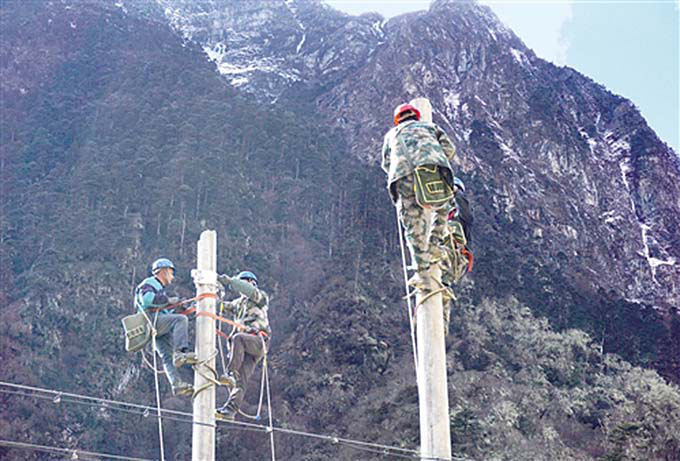2018年初,隆子縣玉麥鄉(xiāng)電力線路全線貫通,9戶32位群眾將用上國家電網(wǎng)源源不斷的電能。圖為工人在玉麥鄉(xiāng)境內(nèi)施工(和訊新聞)