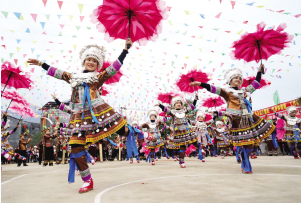 “打同年”是融水縣苗、侗和瑤等少數(shù)民族的文化傳統(tǒng),一般是村與村之間相約在春節(jié)期間進(jìn)行,聯(lián)誼雙方互稱“同年”。整個(gè)活動(dòng)一般持續(xù)三天,包括進(jìn)寨儀式、蘆笙聯(lián)歡、圍同年儀式、聯(lián)歡晚會(huì)、百家宴等。雙方通過吹蘆笙、跳蘆笙舞、對(duì)歌等多種傳統(tǒng)方式聯(lián)歡,增進(jìn)交往交流交融。