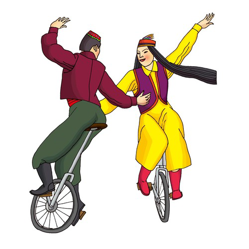 維吾爾族(獨輪車):維吾爾族有7214431人,主要聚居在新疆維吾爾族自治區(qū)。維吾爾族體育項目主要有摔跤、走繩(高架繩,維吾爾語稱為達瓦孜)、打尕尕 (打木棒)、較量、滑冰等?!暗鹧颉北荣愂蔷S吾爾族人民酷愛的一項傳統(tǒng)民間體育運動。